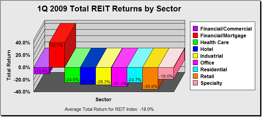 REIT Total Returns by Sector in 2009